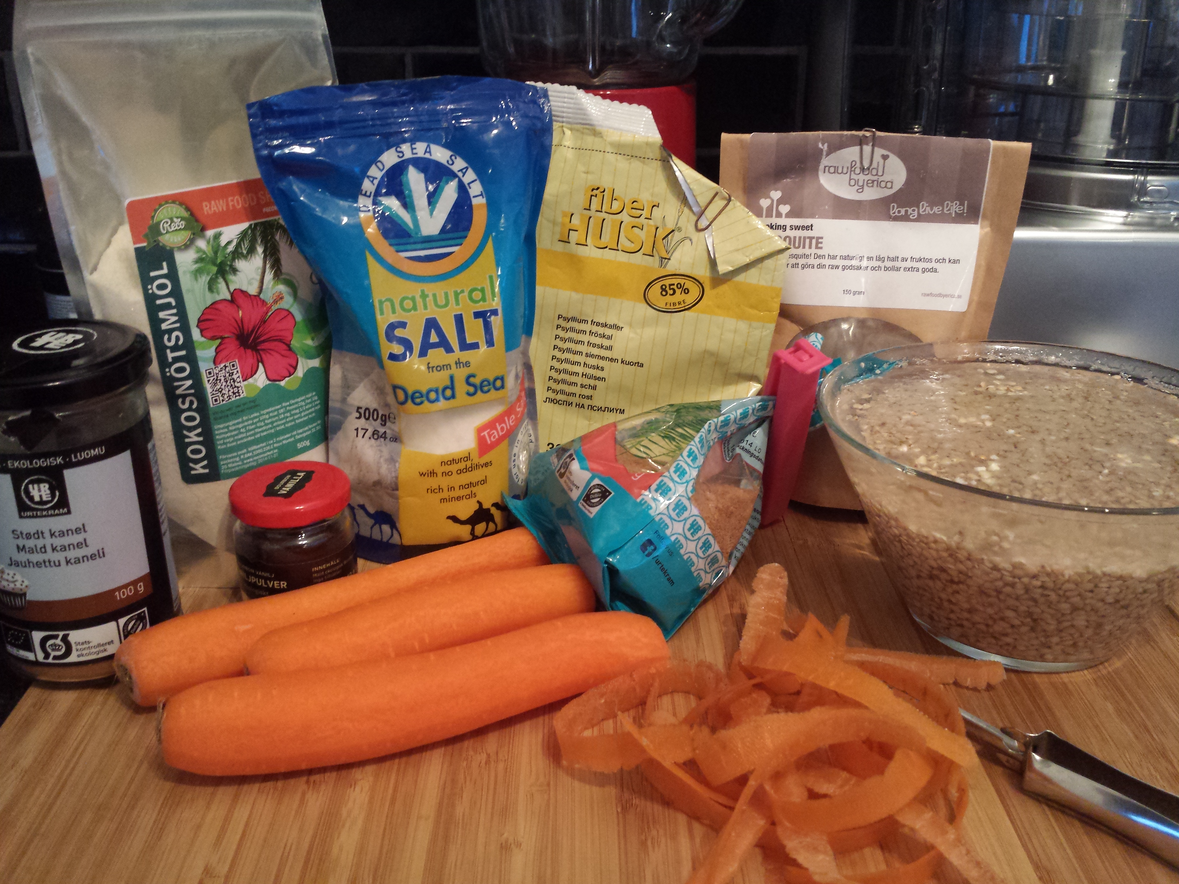 Blötlägg bovetet i en skål med dubbelt så mycket vatten minst en timme men helst 8-12 timmar. Skölj noga i ett durkslag. Lägg därefter bovetet i matberedaren tillsammans med alla andra ingredienser förutom fiberhusk, och kör till en jämn smet. Tillsätt därefter husken och kör till en deg. Låt stå 5-10 min.