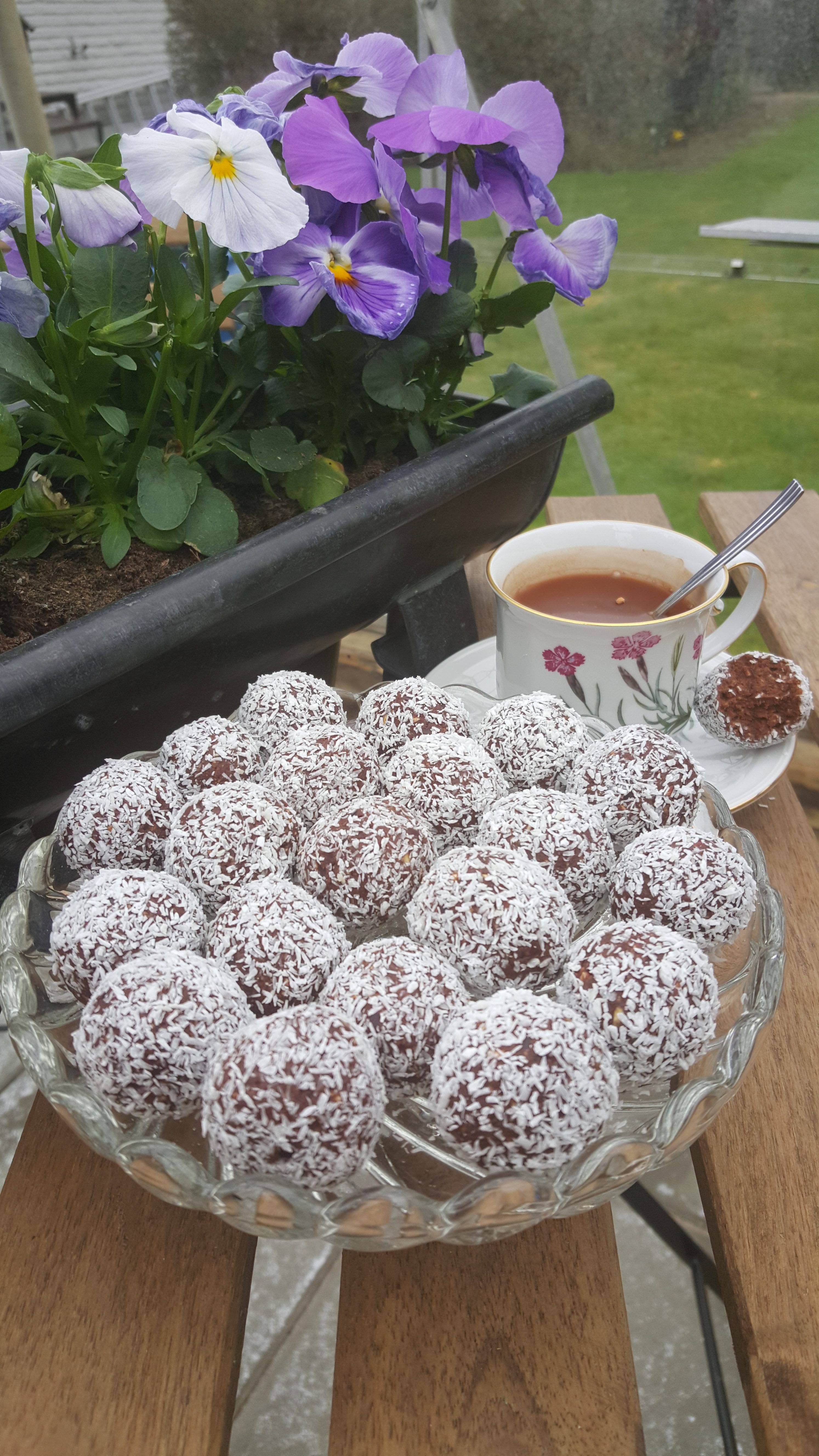 – kokosflingor att rulla i, ca ½- 3/4 dl/ coconut flakes, about 1/3 Cup