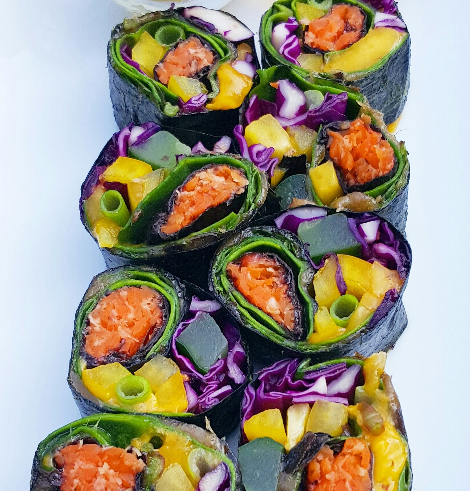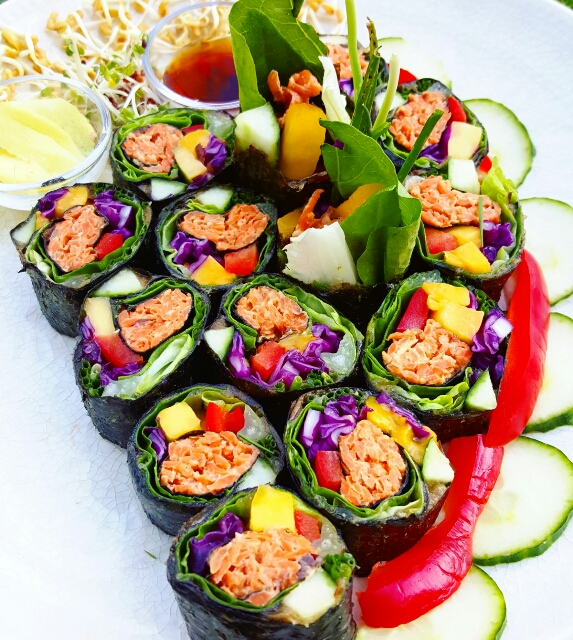 I de här receptet finns allt i rullen, eller ja, inte ris och rå fisk, utan betydligt mer smakrika ingredienser, genom att även använda lite olika typer av texturer i receptet blir det både spännande och roligt att äta. Sushi är inte jätte avancerat, men visst de första gångerna man testar kanske inte blir de finaste, men gott blir det, det kan jag lova dig! Så våga testa göra din egen sushi. Inga speciella redskap förutom en vass kniv behövs!