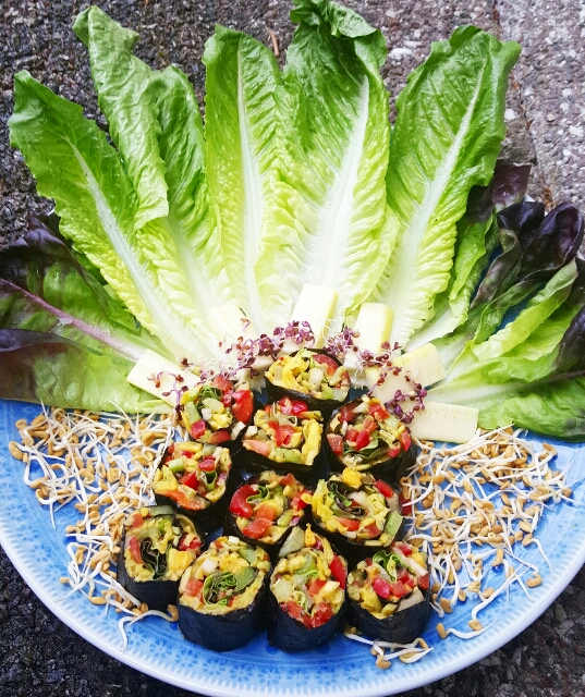 Mosa avokadon med citron, salvia, salt, senap och ev. näringsjäst och svartpeppar. Blanda i resten av ingredienserna. Blanda runt noga med en gaffel och riktigt tryck in pumpan i dressingen. Färdigt! För att se hur du gör sushi med denna fyllningen kan du klicka här.