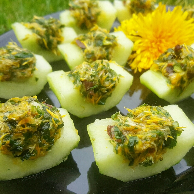 Finhacka blommorna och alla ingredienser som ska hackas. Mosa dadlarna i citron juicen med en gaffel tills det är helt jämt finfördelat. Rör i resten av ingredienserna, tryck ordentligt med gaffeln så att maskrosorna verkligen suger upp alla smaker och så att smaken från löken kommer ut lite bättre. Ha i mer citron (eller vatten) tills du har en perfekt konsistens som passar dig! Smaka av och se om du vill ha mer kryddor. Personligen tycker jag inte salt och peppar behövs, men det kanske du tycker, prova!