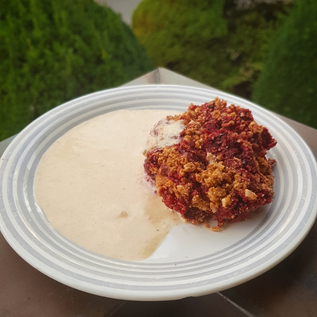 – Vaniljkräm gjord på 2 dl blötlagda cashewnötter som mixas slätt med 1 moget päron, ½-1 tsk äkta vaniljpulver, ev. en nypa kardemumma om man vill. Justera vätskan utefter hur tjock du vill ha den.