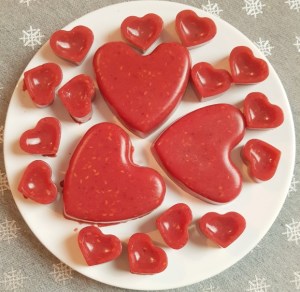 Mixa de tinade hallonen med färska urkärnade dadlar i en matberedare tills det är jämt och slätt. Man kan sila allt om man vill ha bort hallonkärnorna, men det är faktiskt nice att ha dom kvar också! Låt hallonkrämen vara kvar i matberedaren och sätt på vattnet på spisen. Lägg i agar agarpulvret och vispa. Koka nu dett i ca 10 min under väl omrörning. Häll i agarvattnet i matberedaren på hallonkrämen och mixa snabbt ihop det så allt blandas. Det stelnar snabbt så var inte för långsam här! Häll ner allt i formar. Låt formarna stå i kylskåpet minst 30 min, eller mer om du har stora formar såklart. När dem stelnat helt kan du ploppa ut hjärtanen och servera! Ät upp hjärtanen inom 4 dagar och förvara dem i kylskåpet!