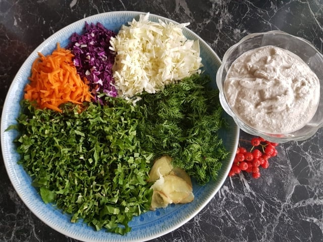 4 msk surkål+ ev. lite av juicen surkålen ligger i om du gillar syrligare smaker, man kan också mixa i lite pressad citron isåfall om man vill ha det syrligare/ 4 tbsp sauercraut